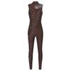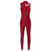 Damen Glänzende Strasssteine Gymnastik-Body Stehkragen Ärmelloses Design Schlüssellochrücken Durchsichtiges Mesh-Patchwork-Outfit