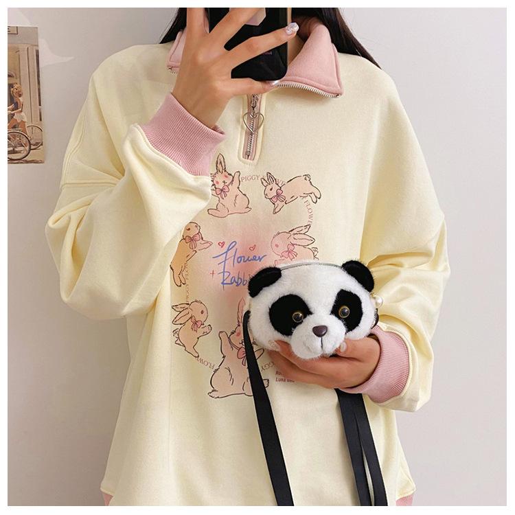 Children's cute plush toy panda bag doll messenger bag children's school bag plush gift women's bag