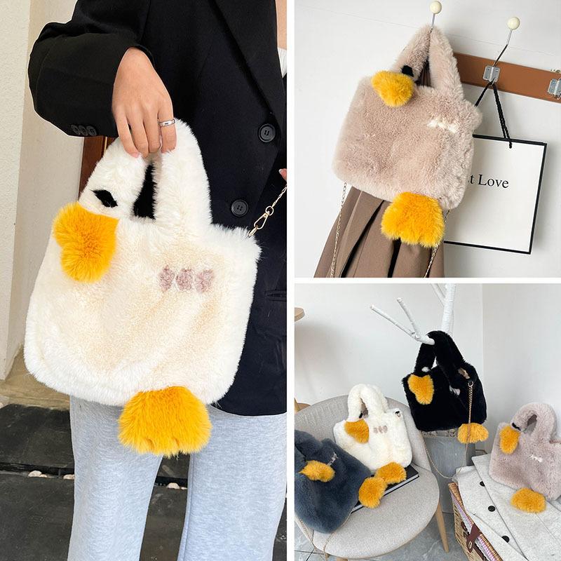 Cute ins cartoon plush bag handheld female bag 2025 winter new large-capacity foreign-style girl bag tide
