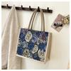 Large capacity linen tote bag 2025 new floral commuter tote bag female student class shoulder handbag