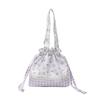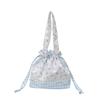 2025 new floral plaid drawstring shoulder bag student Korean version handbag large capacity portable ins commuter bag