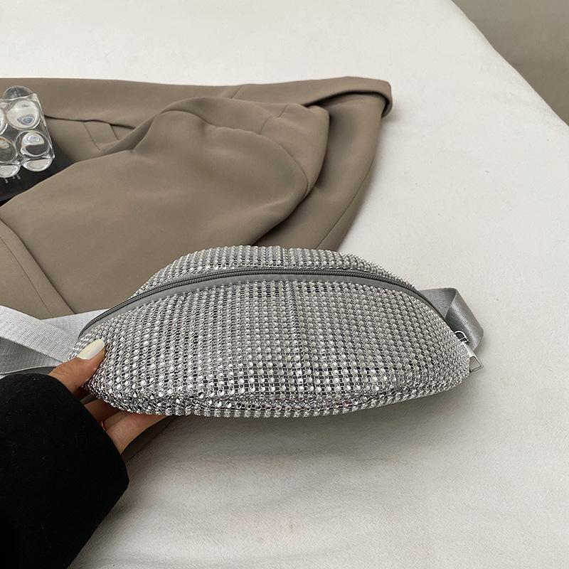 2025 Sommer neu Koreanische Version ins Trend gewebte Gürteltasche Damenmode schräge Umhängetasche Schulter Brusttasche Diamanttasche