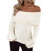 Damen Pullover Schulterfrei Langarm Einfarbig Stricktops Slim Fit Asymmetrisches Design Pullover Tops Strickware