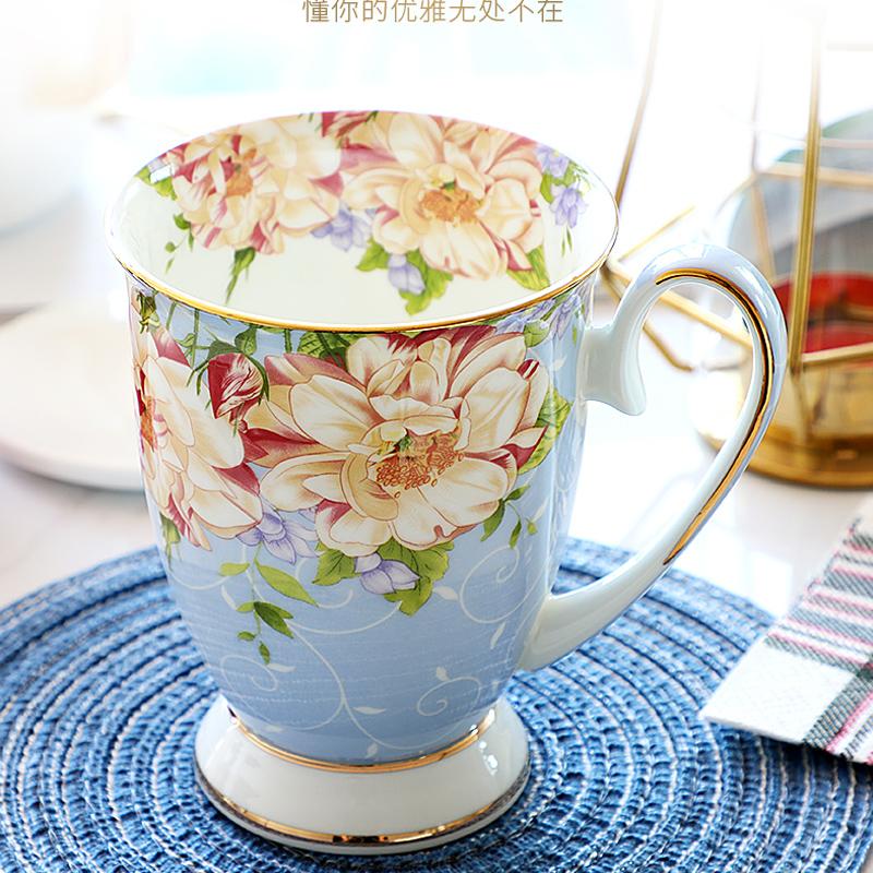 Kreativer Europäischer Keramikbecher mit Deckel Große Kapazität Knochenporzellan Wasserbecher Frühstückstasse Milchkaffeetasse Leichter Luxus