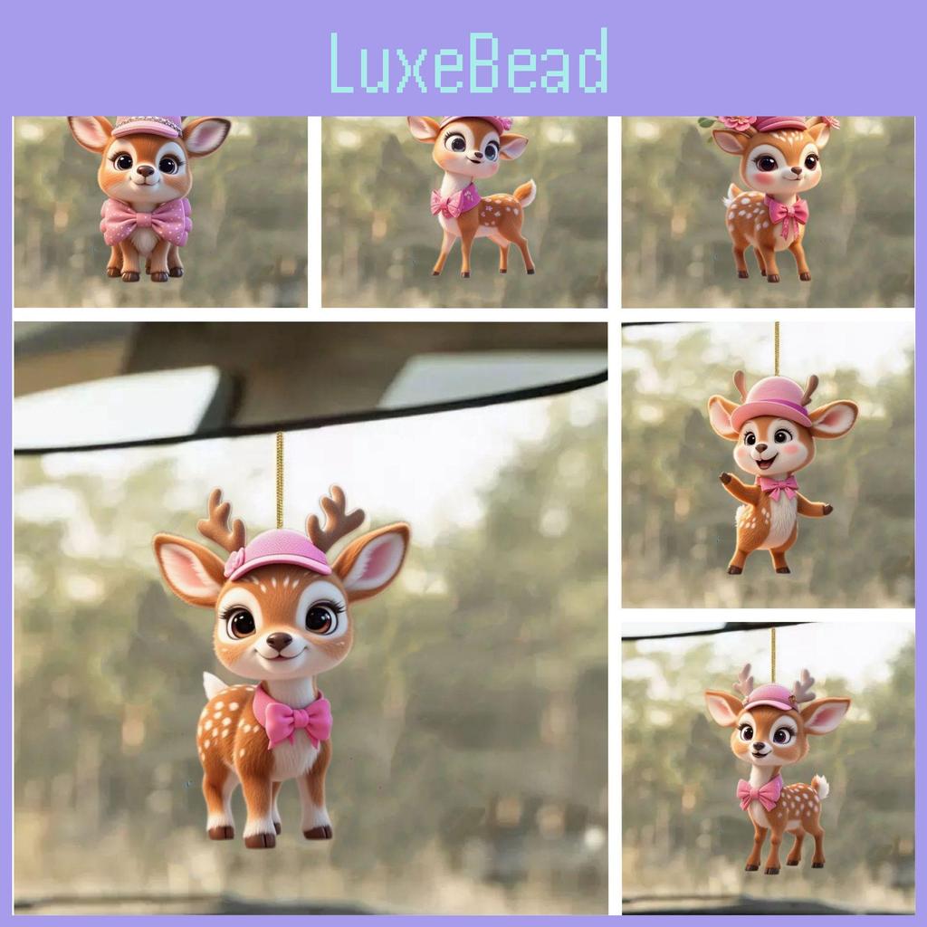 Mit Cartoon Reh Rosa Hut Auto Spiegel Ornament Anhänger Für Kinder Fahrzeug Deko