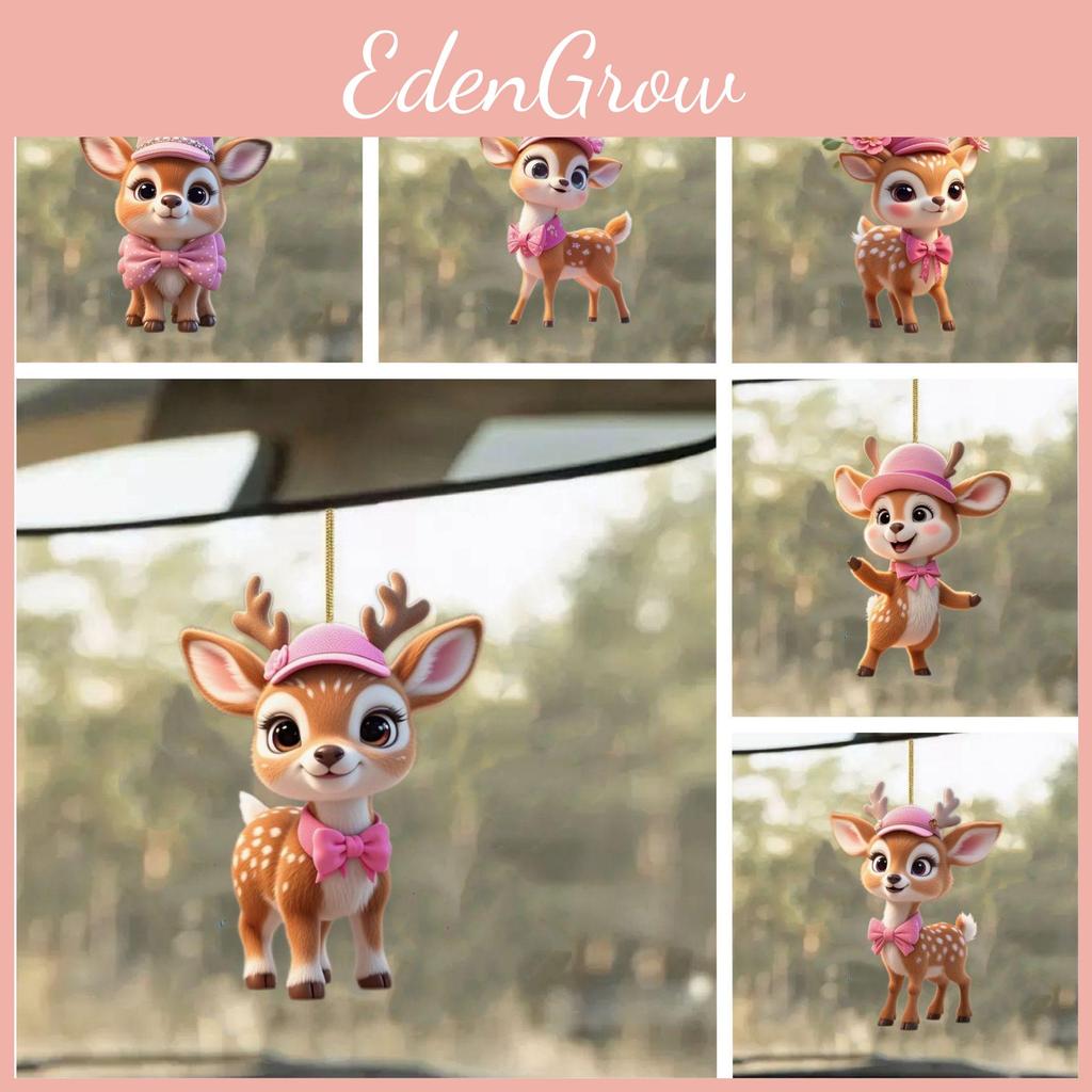 Cartoon Deer With Pink Hat Car Mirror Ornament Pendant For Kids Vehicle Decor
