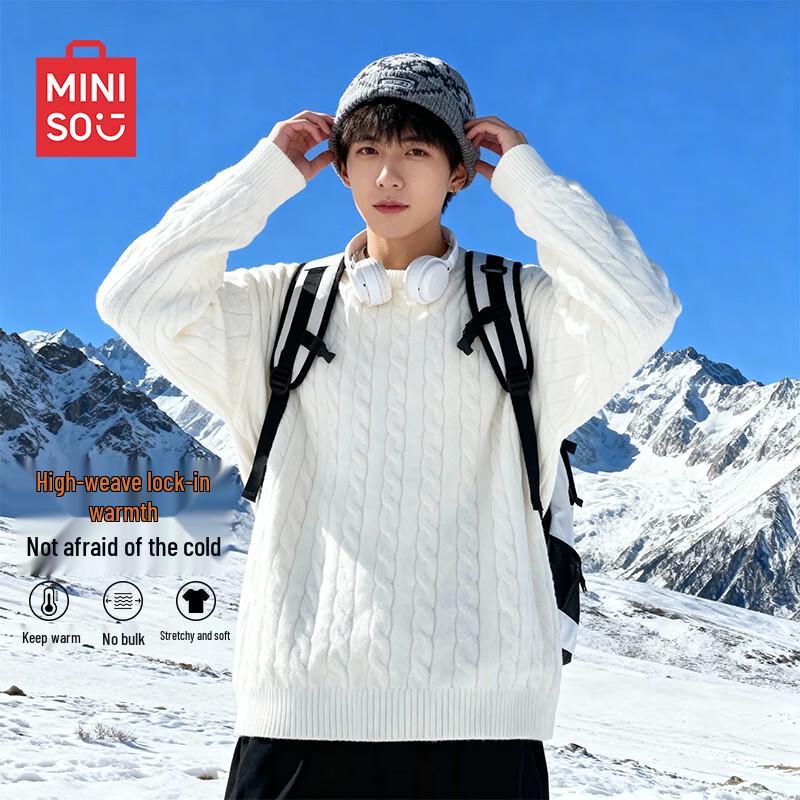MINISO Men's Cable Knit Round Neck Sweater