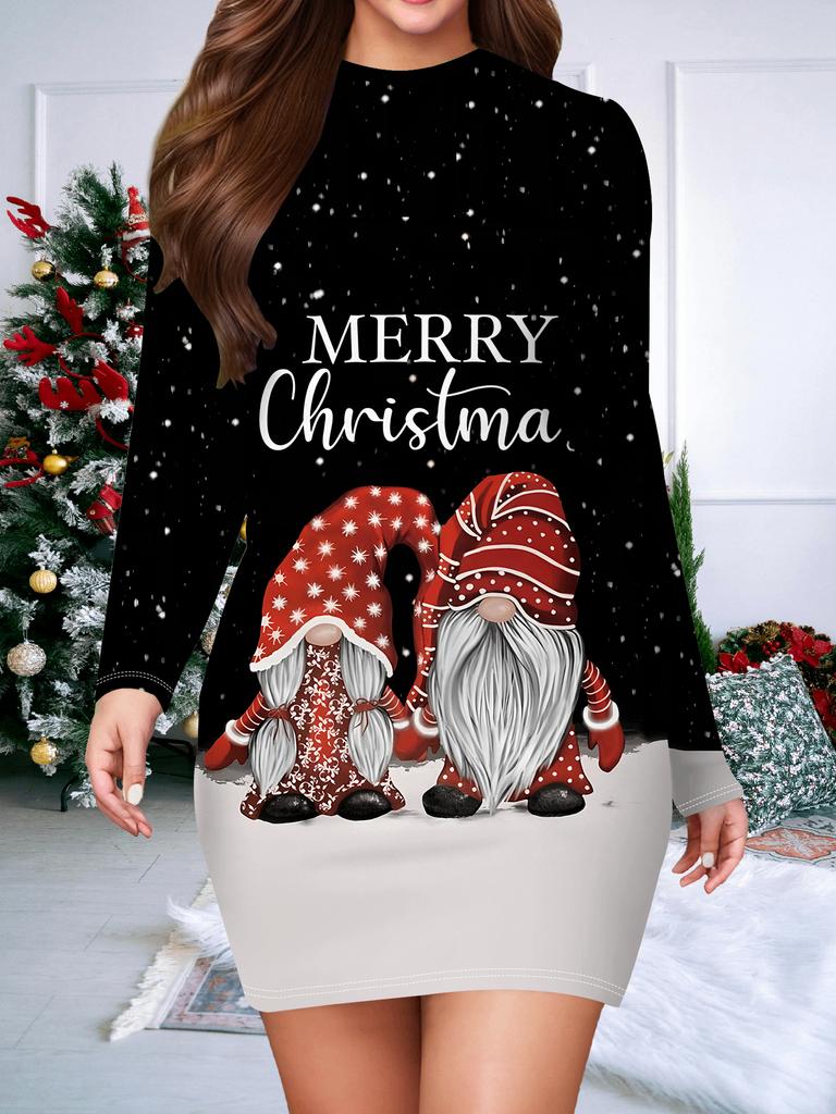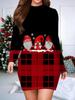 2025 Herbst und Winter Neues Damenkleid mit Hüftumspielung, 3D Weihnachtsmann Druck und Färbung Damenmode Langarm Rundhals Sexy Hüftumspielendes Kleid