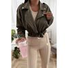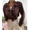 Herbst und Winter Reißverschluss Damen Kurzjacken Neue Mode Revers Anzugkragen Langärmliger Bindemantel Einfarbig Street Casual