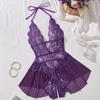 New Erotic Crotchless Lingerie Date Teddies Bodysuit Lace Up Halter Deep V Babydoll Dress Sexy Backless Hollow Out Porn Costume