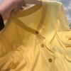 V-neck yellow long-sleeved knitted cardigan top, early autumn new lazy loose thin sweater jacket