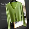 V-Ausschnitt Strickjacke Damen Frühling und Sommer kurzer Rock Slim-Fit dünnes Oberteil