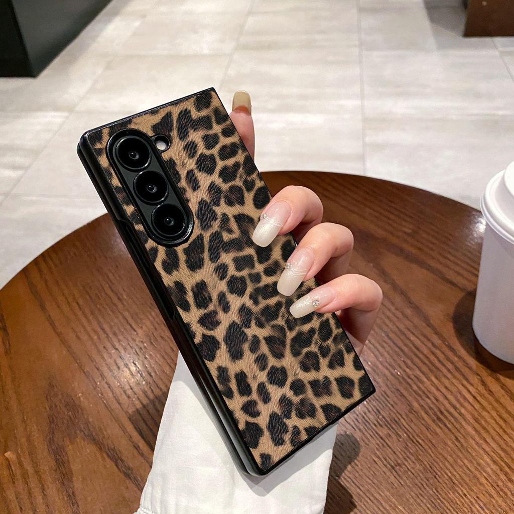 Stoßfeste Schutzhülle aus Leder mit Leopardenmuster für Samsung ZFold7/ZFold6