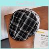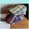 Retro Twill Cotton Spliced Checkered Beret Cap With Curved Brim For Casual Wear
