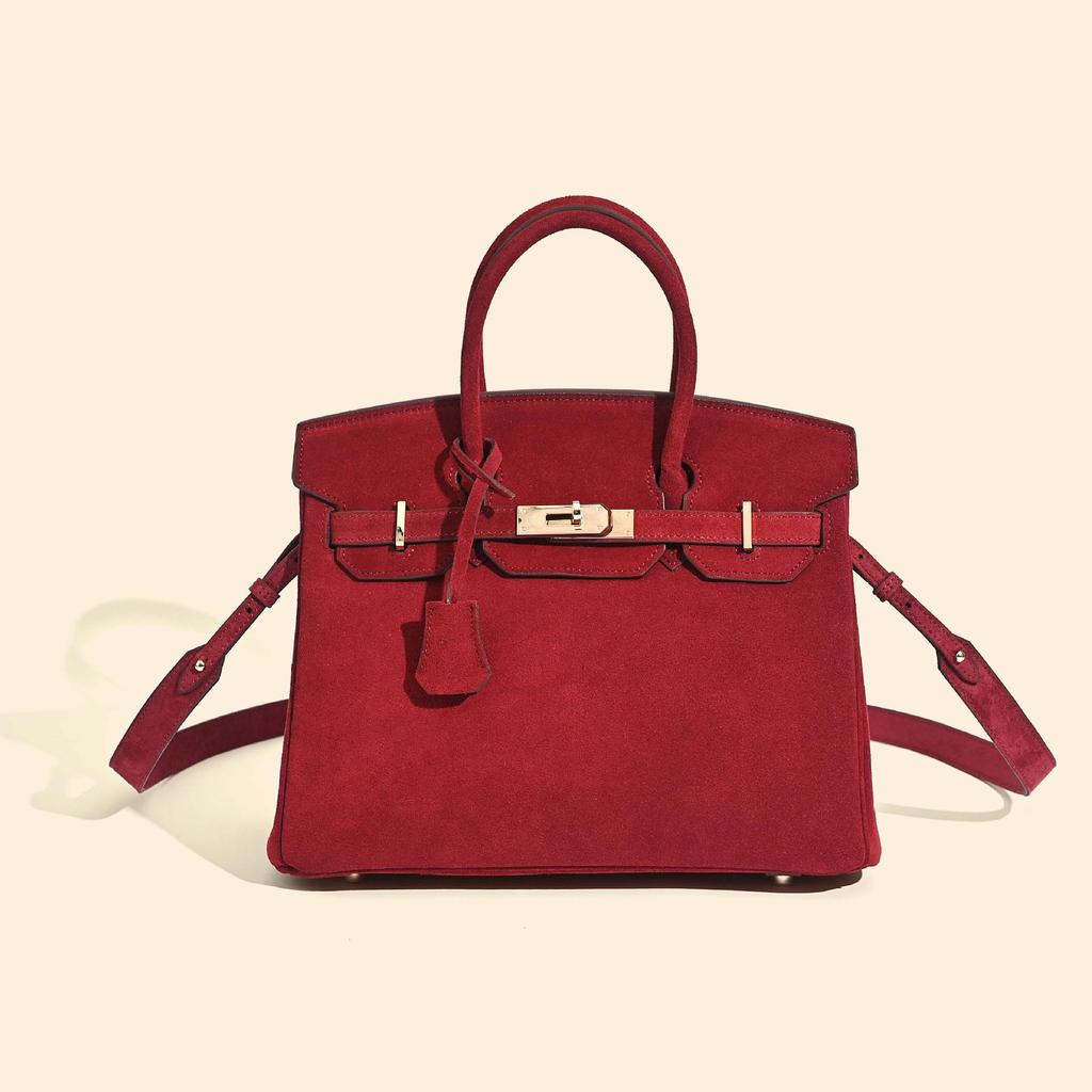 2025 Herbst/Winter Damen Echtes Leder Rindsleder Wildleder Platin Große Kapazität Schulter- und Umhängetasche