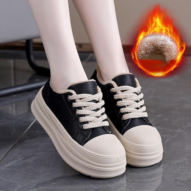 Damen Winter Schnürstiefel mit dicker Sohle Fell eins leicht warm kälteabweisend gefüttert Schneestiefel rutschfest abriebfest lässige Sneaker Baumwollstiefel