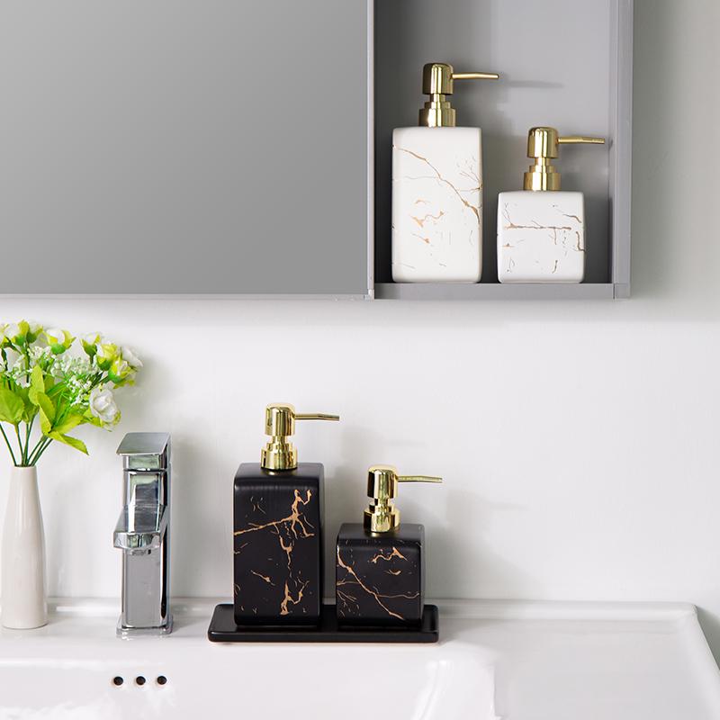 Modern Gold-plated Marbled Ceramic Lotion Bottle Shampoo Shower Gel Dispensing Empty Bottle Soap Dispenser Bathroom Accessories