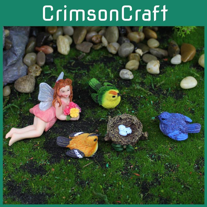 Fee Harz Blume Modell Dekor Simulierter Vogel Tischfigur Landschaft Mikro