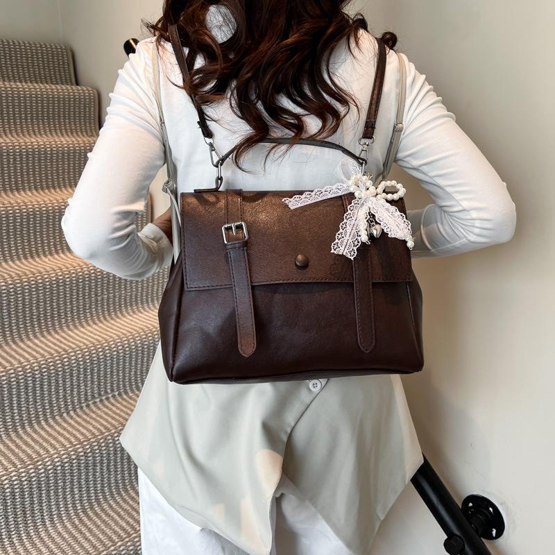 Retro preppy style large-capacity handbag women's 2025 summer new Korean version solid color backpack textured messenger bag