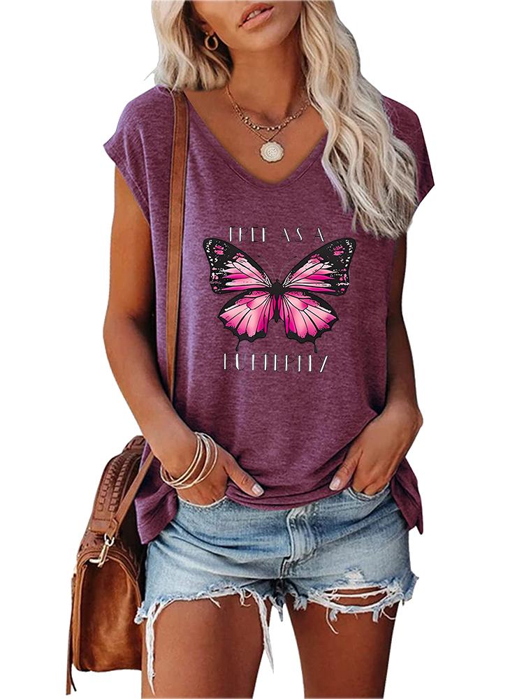 Damenmode V-Ausschnitt Kurzarm Top Sommer Casual Print T-Shirt