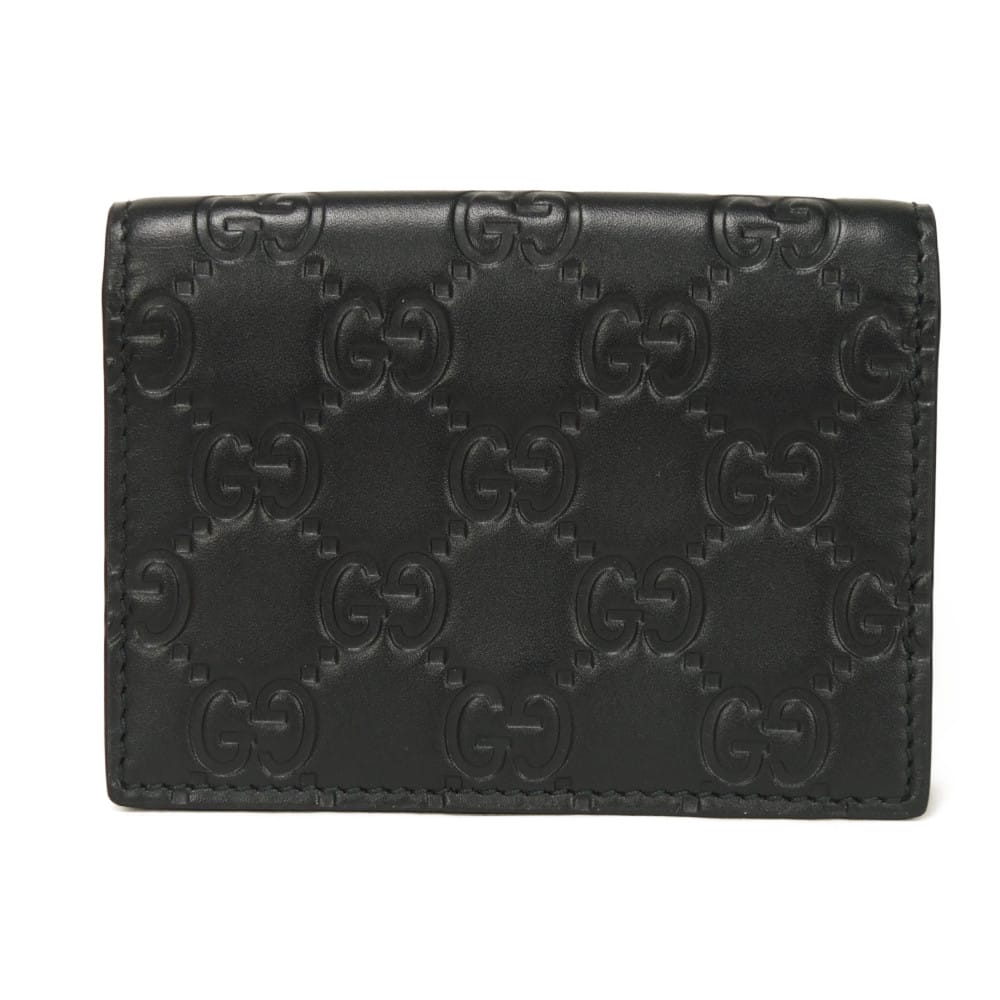 Used 9539 Guccissima Card Holder 779844 CWC1N 4009 7946 Bifold Flap Gusset Compartment with GG Embossing Black Men's