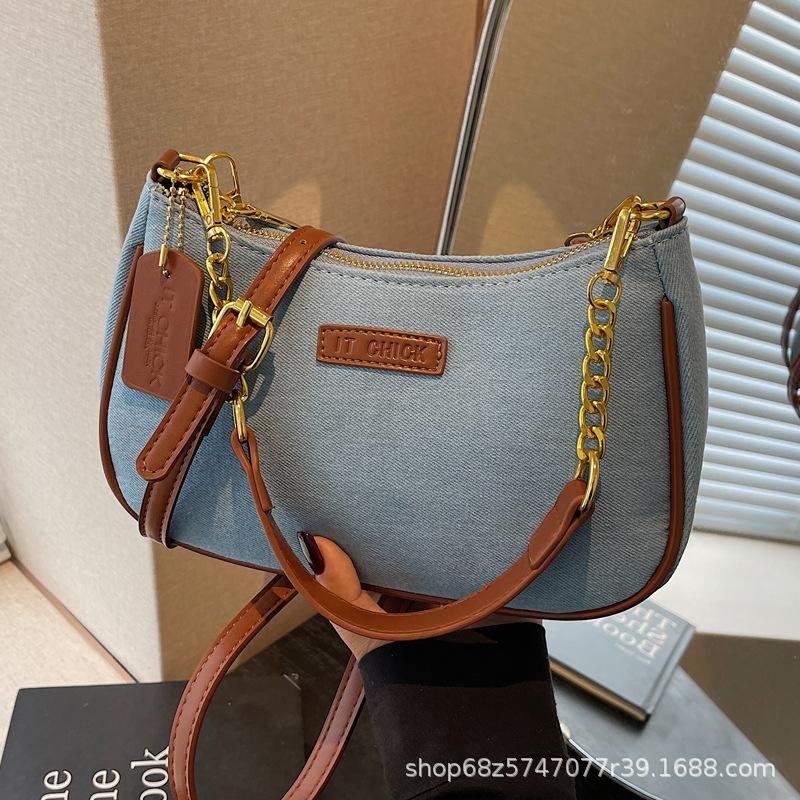 Denim underarm bag women's bag 2025 new fashion niche high sense shoulder bag Internet celebrity dumpling bag messenger bag