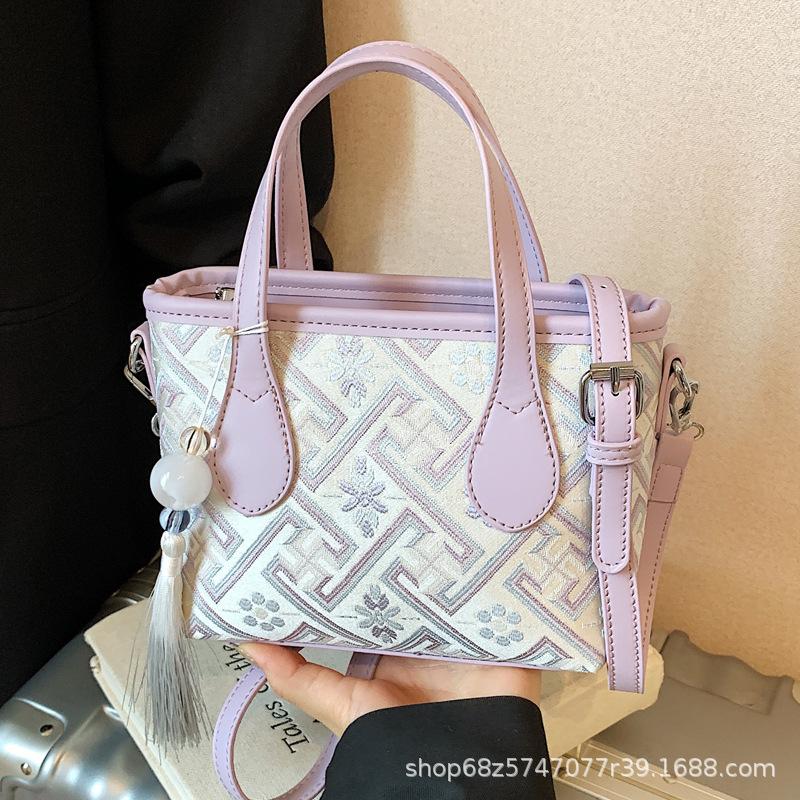 New Chinese style national style bag women's 2025 new trendy fashion versatile hand bag shoulder crossbody bucket bag