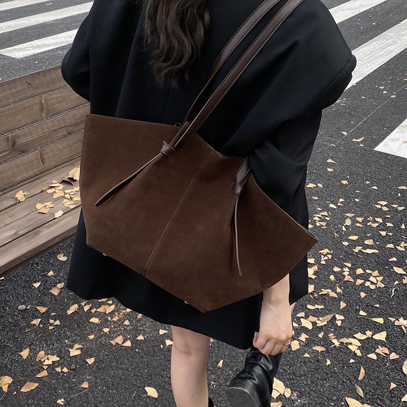 Vintage Wildleder-Tragetasche: Damen Schultertasche mit großem Fassungsvermögen für Herbst/Winter