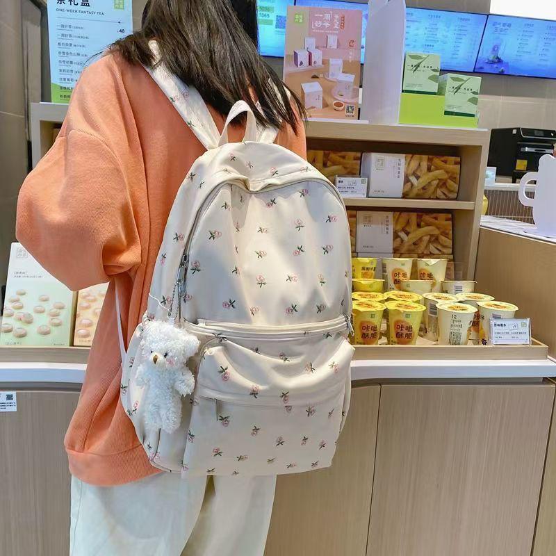 Leichter Rucksack mit Reißverschluss, floraler Print im koreanischen und japanischen Stil - Großes Fassungsvermögen für Schüler