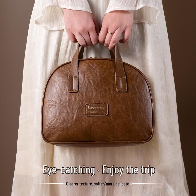 2025 Ölwachsleder Damen Kosmetiktasche - Große Kapazität, Wasserdicht, Leichter Luxus, Tragbare Reise-Toilettentasche
