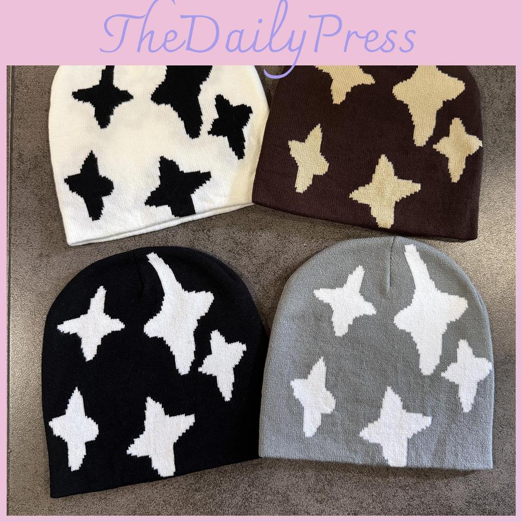 Modische, lässige und warme Strickmütze mit Sternenmuster für Herbst und Winter