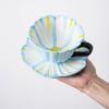 Keramik-Kaffeebecher und Untertassen, handbemalte Blumen, handbemalte unregelmäßige Tassen und Untertassen, hochwertige Frühstückstassen