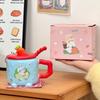 Mädchenherz hohes Aussehen Geburtstagsgeschenk niedlicher Hase Wasserbecher für Freund und Freundin Schwester Paar Keramik mit Deckel Löffel