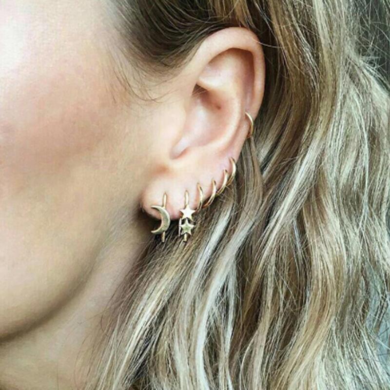 7pcs/lot women's clip earrings open ear cuff without piercing hiphop boucle oreille femme gold color metal star moons ear clips