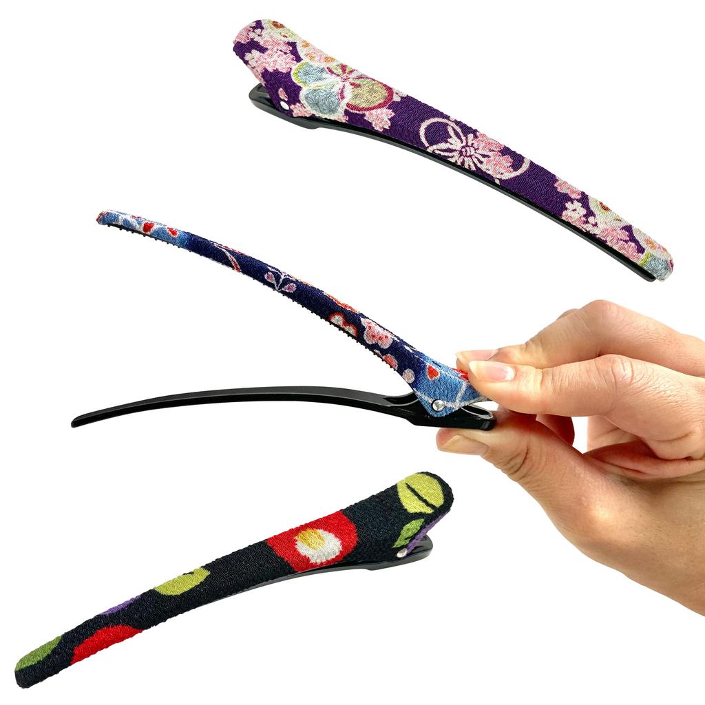 Yume Chirimen Hair Clip, Beak Clip, Japanese Pattern, Kimono Accessory, Barrette, Duckbill Hair Accessory, Stylish (Set B (Blue, Purple, Black))