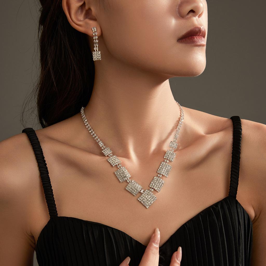Temperament Luxury Rhinestone Necklace Earrings Two-piece Set