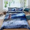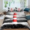 Top Leuchtturm Bettbezug Set Nautisches Surfen Ozeanwelle Bettwäscheset Queen Polyester Küsten Naturthema Steppdeckenbezug