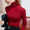 Turtleneck bottoming shirt women's 2025 women's solid color thin velvet long-sleeved t-shirt warm inside with waist top temperament commuting