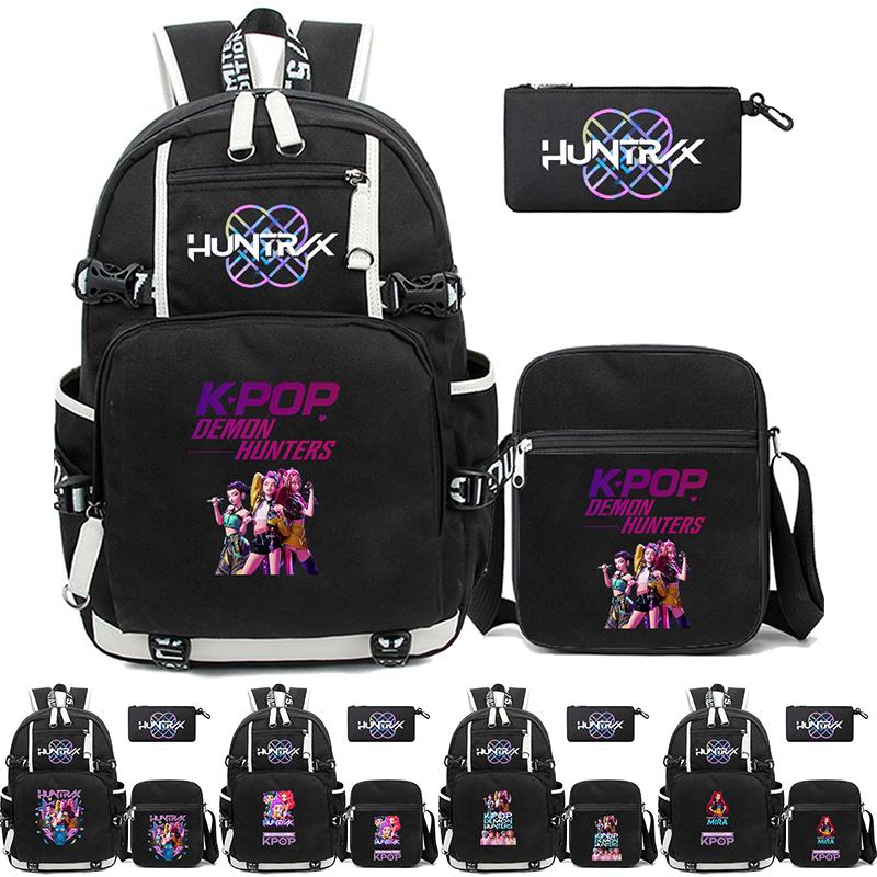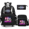 3 Stück/Set Neuer Cartoon Kpop Bedruckter Rucksack mit Federmäppchen Umhängetasche für Teenager Mädchen Junge Schultasche Große Kapazität Wasserdicht Reisetasche Kindergeschenk