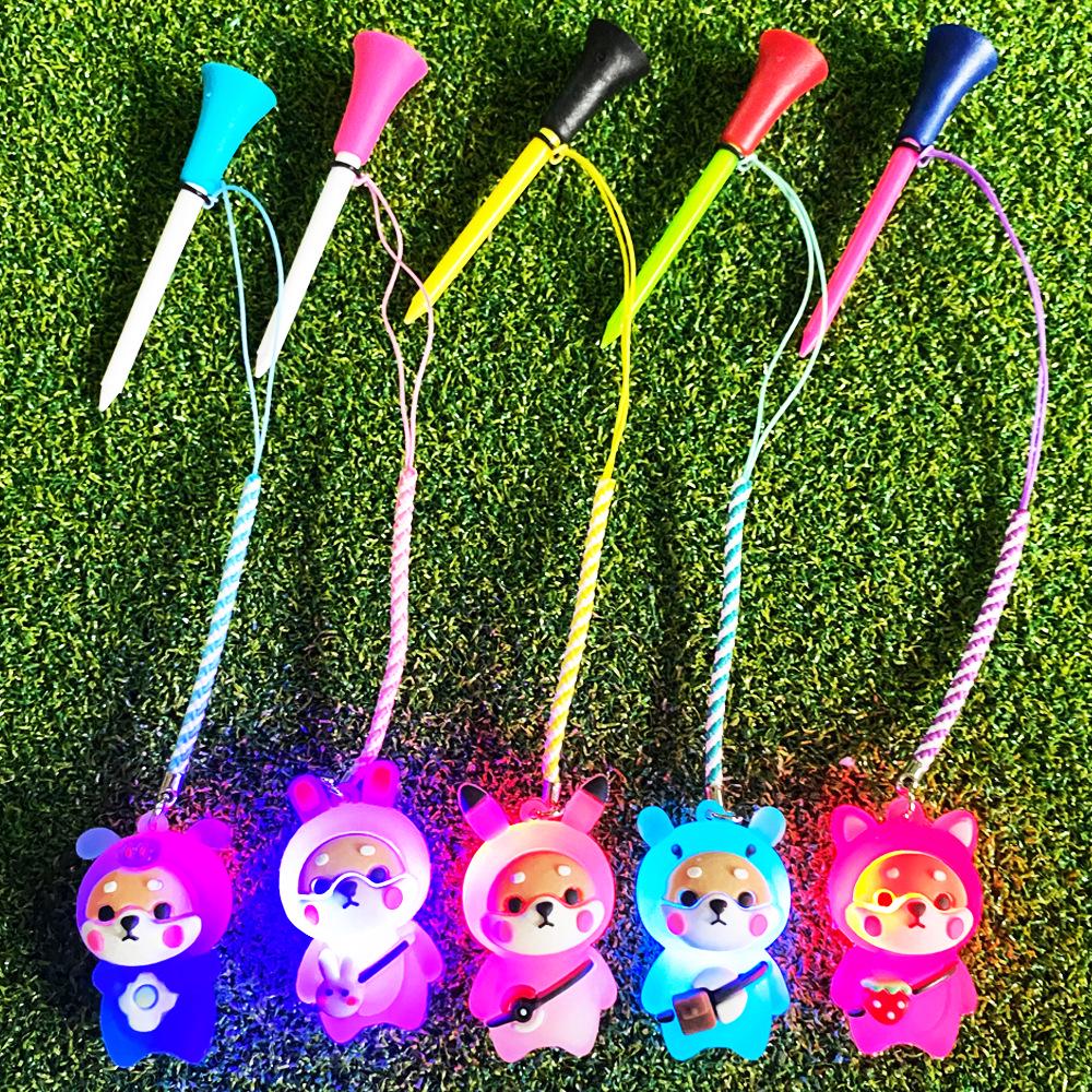 Shiba Inu Pattern Golf Tee with Flashing Ball Pegs and Anti-Lost Cartoon Figurine Holder