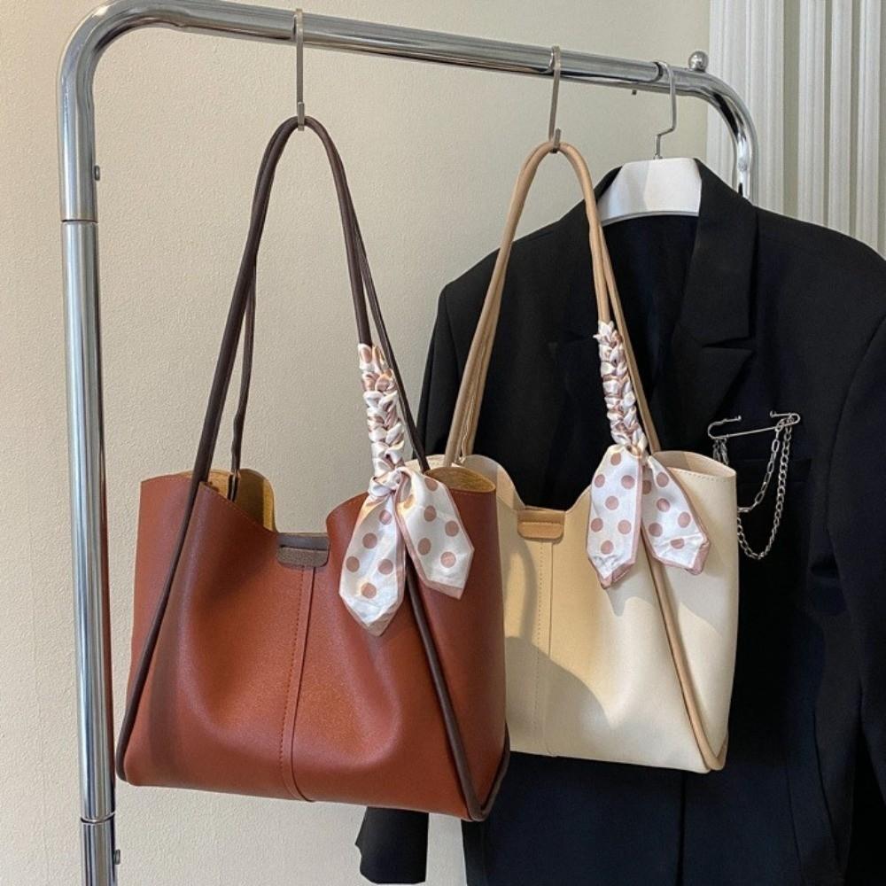 Tote Bag Silk Scarf Straps Handbag Large Capacity PU Underarm Bag Women PU Shoulder Bag Lady