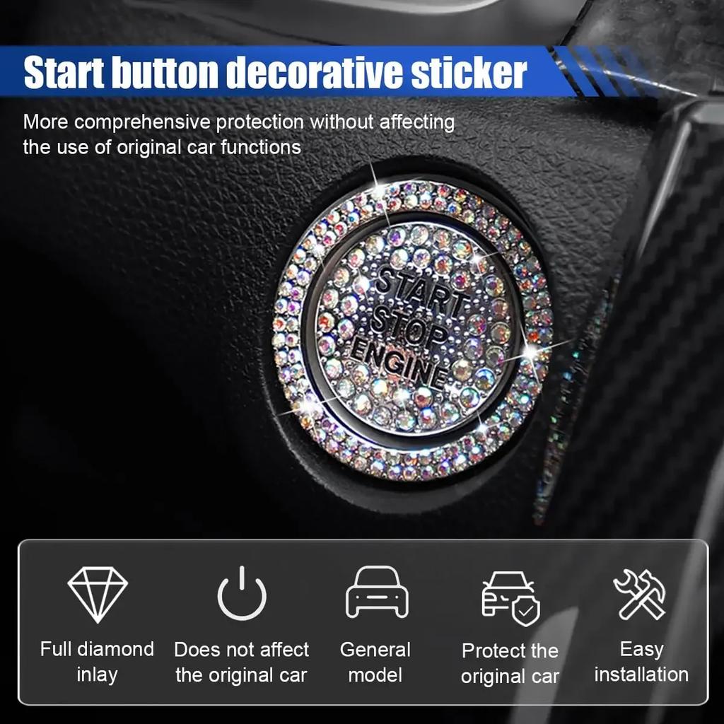 Car Bling Crystal Rhinestone Engine Start Ring Decals, Car Push Start Button Cover Sticker, Sparkling Car Interior Accessories