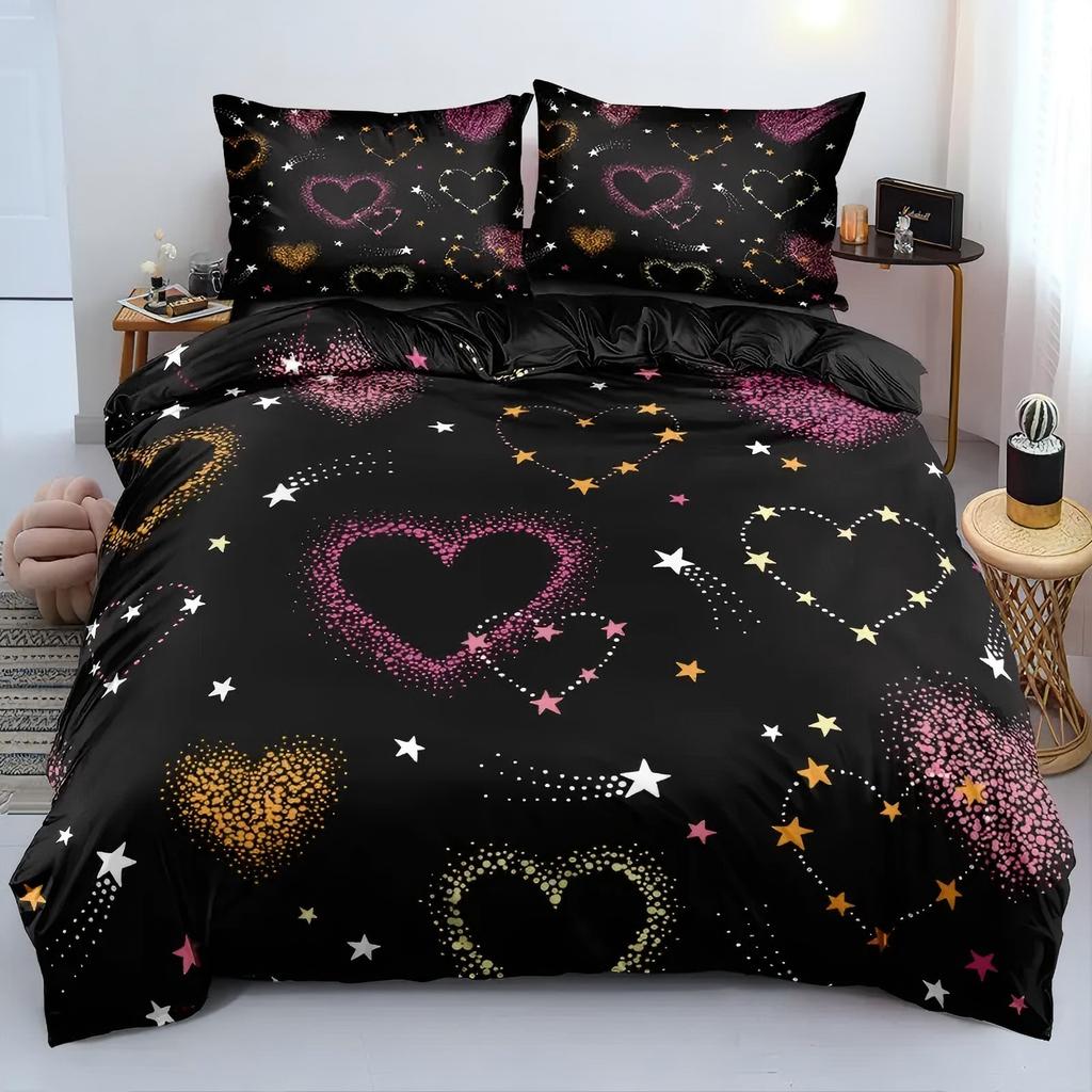 Colored Heart Shape Pattern 3D Printed Duvet Cover Black Style Abstract Art Luxury Quilt Cover Set Soft Comfortable Bedding Set