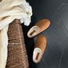 Retro leather Boken bag head slippers women wear winter warm round head lazy thick sole one pedal warm cotton shoes