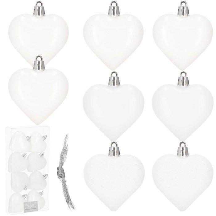 Boules de sapin de Noël - SPRINGOS - 7 cm - 8 pcs - Coeurs blancs incassables - Décorations élégantes