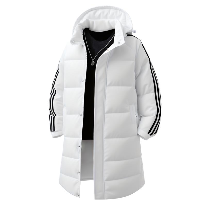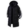 Three Bar Long Winter Couple Style Medium Long Cotton Coat Men's Thick Coat Casual Detachable Hat Cotton Coat Over Knee Cotton Coat