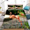 Girls Boys Tropical Botanical Leaves Flamingo Bedding Set Palm Leaf Comforter Cover King Size Toucan Flamingos Duvet Cover Kids