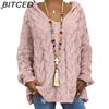 BITCED Herbst/Winter Einfarbiges Zopfmuster-Kapuzensweatshirt für Damen