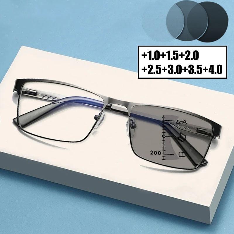 Herren Vintage Photochrome Multifokale Brille Unisex Damen Business Alterssichtigkeit Lesebrille Mode Uv400 Sonnenbrille +1.0+4.0