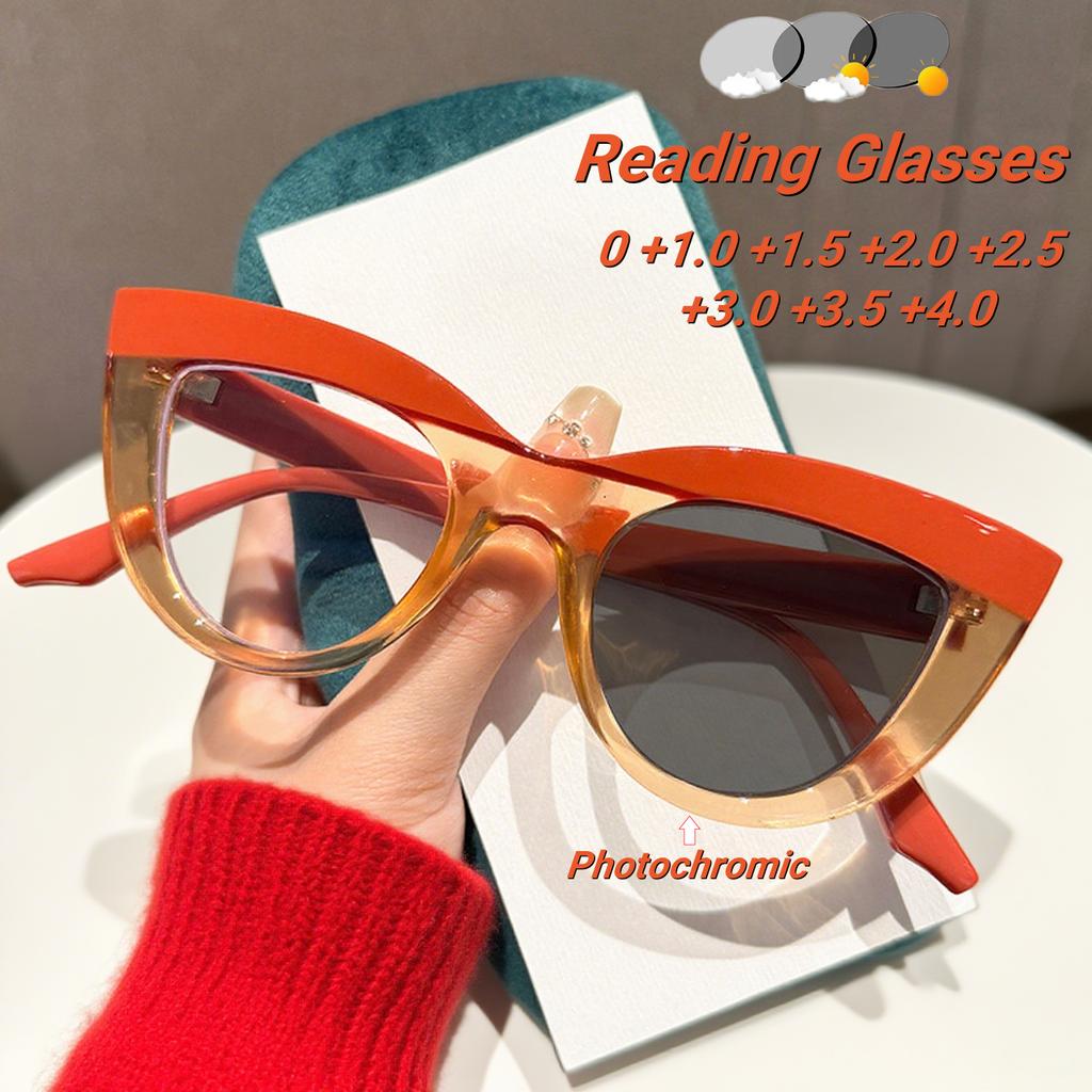 Fashionable And Personalized Cat Eye Photochromic Women'S Reading Glasses Retro Neutral High-Quality Presbyopia Glasses